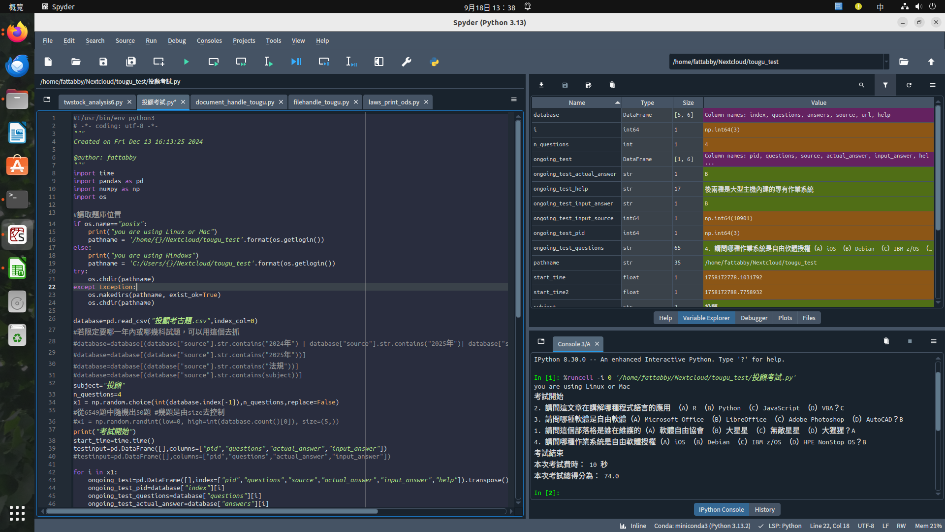 網路上常見如阿摩、MOSME等線上題庫,讓使用者在上面做考古題、做完對答案...諸如此類。但是這種網站畢竟是套裝軟體,若想自己修改參數,例如題目考啥、考幾題、答對得幾分、答錯倒扣幾分、甚至答題紀錄等不甚方便。有時還需要付錢+登入才能使用。最近肥貓在準備轉職的考試,想說這些功能如果網站沒有,自己弄一個不就得了嗎?於是用Python做出一支簡單的考試程式來用。