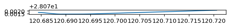 linestring_new='LINESTRING (120.6843718 28.0717455, 120.6851567 28.0717212, 120.6868004 28.0715734, 120.6881804 28.0714648, 120.6888603 28.0714379, 120.6934563 28.0714466, 120.6947348 28.0714651, 120.6953718 28.0714821, 120.6959299 28.0714969, 120.6980259 28.0715527, 120.7183476 28.0720932,120.7192258 28.0721166, 120.7206746 28.0721547)'