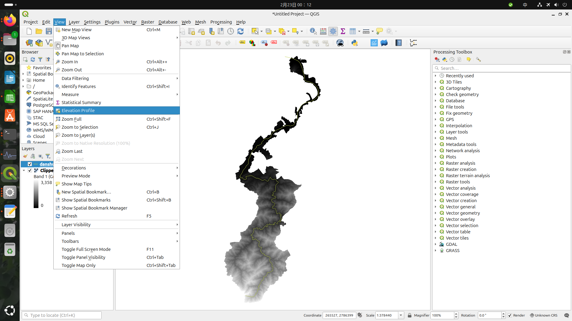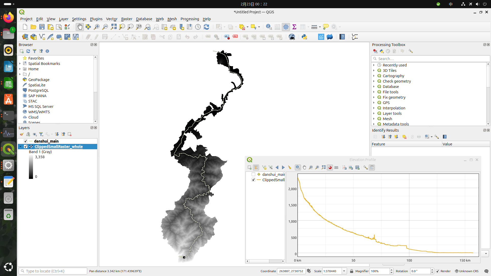 地理資訊系統其中一個有趣的應用,就是取得各路段的高度表。這種高度表在爬山、修築鐵公路時非常重要。雖然這次文章的標題叫做路段,但我想用在自然地理上的另一個地方,即河川(從源頭)到入海口大致的高度表。這在水利資源開發,例如航道規劃、水庫設計都有他的工程需求。