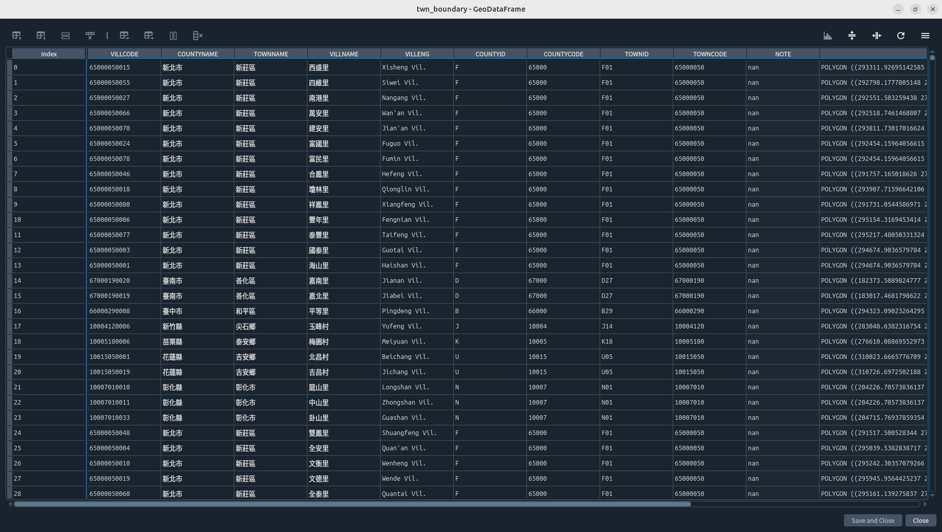 - 效能與經濟性:台灣的地域小,資料也不算多,普通電腦尚可勝任。但是遇到美國、中國這種大國的資料,大批資料匯入QGIS不但慢,而且容易灌爆記憶體,而需要事先在命令列預處理。且用pandas的unique()方法可以在極短時間內知道這欄位裡有哪些東西。